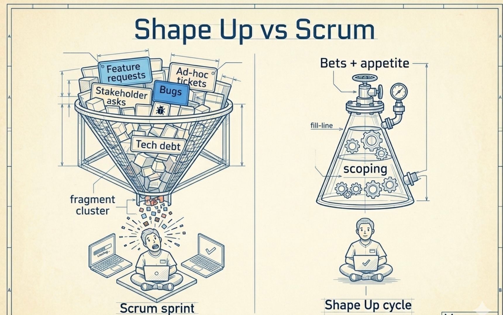 Work is organized into longer cycles—often around six weeks—where teams commit to solving a defined problem without constant disruption. This length matters. It’s long enough to complete meaningful work, but short enough to maintain urgency.